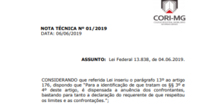 Clipping: Nota Técnica nº 01/2019 – CORI-MG