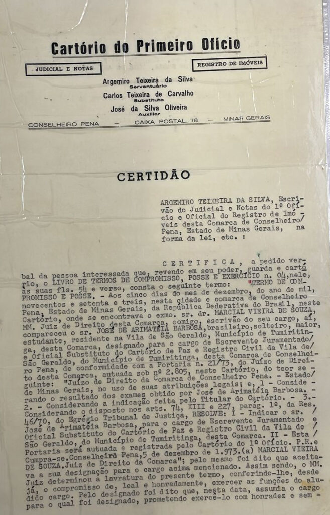 Ao completar 52 anos de cartório, José de Arimatéia Barbosa reafirma, com sua trajetória profissional, o papel essencial dos notários e registradores na promoção da segurança jurídica, da cidadania e do desenvolvimento social e econômico do país.